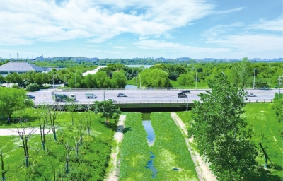 欢乐大道南明渠两岸披“绿衣”。