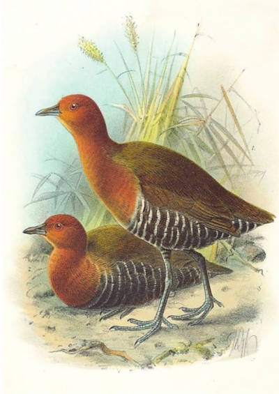网络上的白喉斑秧鸡绘画。