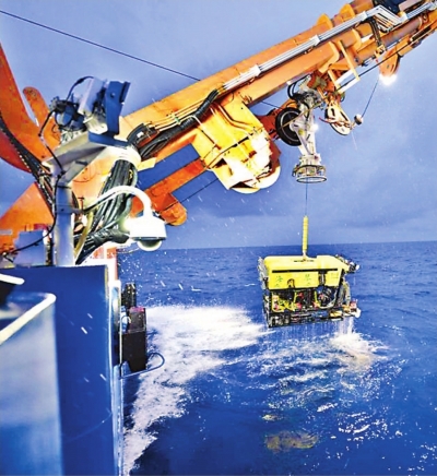 “海琴”号由上海交通大学水下工程研究所自主研制,是为“中山大学”号海洋综合科考实习船量身定制的新型高效深海电动ROV系统,搭载了高清摄像机、多功能机械手、探测传感器等科考设备,具备自动定向、悬停定位、自动巡线等智能作业能力。