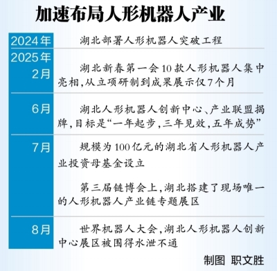 “天问3号”100%由武大学生研发,核心零部件90%以上来自湖北,从设计到调试到落地仅用两个月。指导老师李淼教授领衔成立的武汉手智创新科技有限公司,在建4条人形机器人自动化生产线及机器人商业应用场景展示中心,将年产1500台人形机器人。