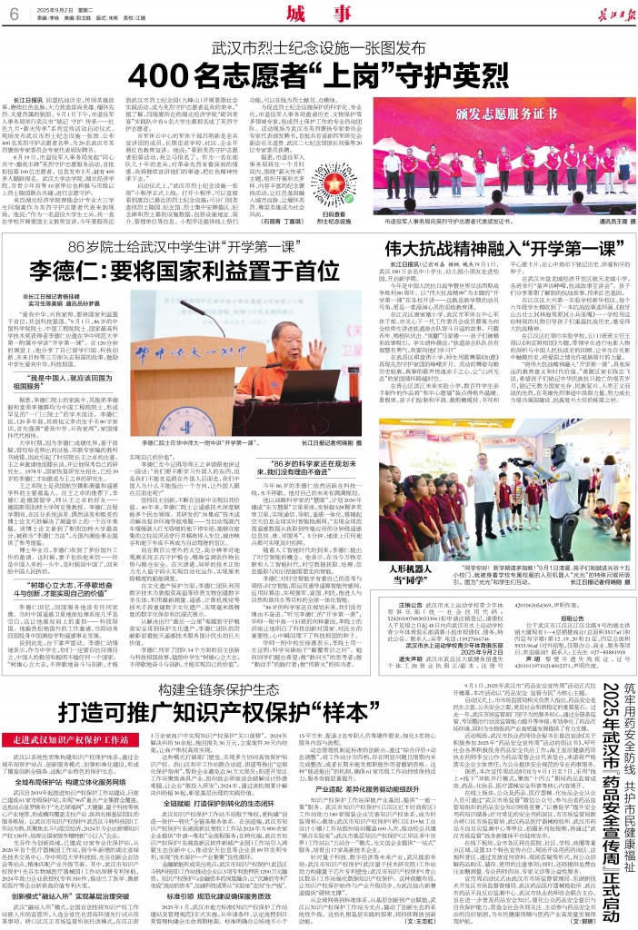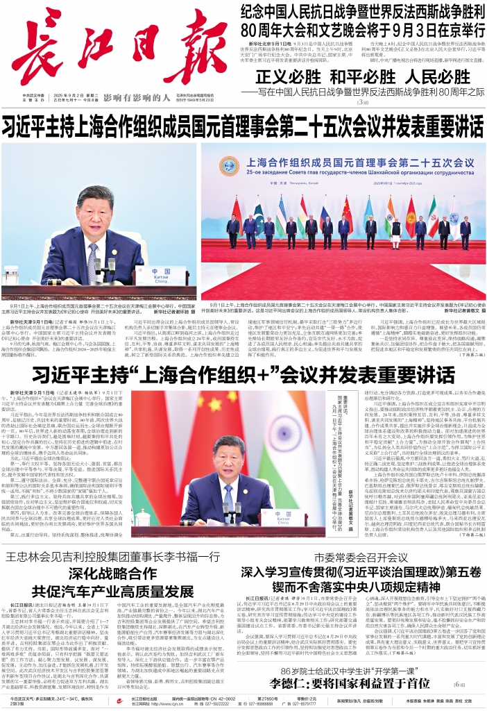 1 头版 2 要闻 3 抗战胜利80周年 4 要闻 5 我为武汉“十五五”规划建言 6 城事 7 读+ 8 读+