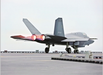 歼-35舰载战斗机从福建舰上电磁弹射起飞(资料照片)。