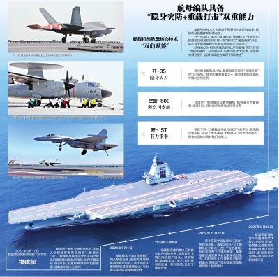 新华社北京9月22日电(记者丁增义 黎云)记者22日从海军有关部门获悉,在纪念中国人民抗日战争暨世界反法西斯战争胜利80周年大会上受阅的歼-15T、歼-35和空警-600三型舰载机,已于此前成功完成在福建舰上的首次弹射起飞和着舰训练。这是我国航母发展历程中取得的又一次突破,标志着福建舰具备了电磁弹射和回收能力,对推进海军转型建设具有里程碑意义。