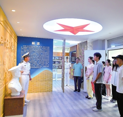 市军休六中心军休干部与受助学生一同参观海军工程大学“晓松队”荣誉室。