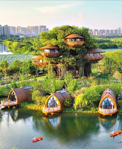 武汉城建开元森泊度假乐园树屋等特色房型最受欢迎。