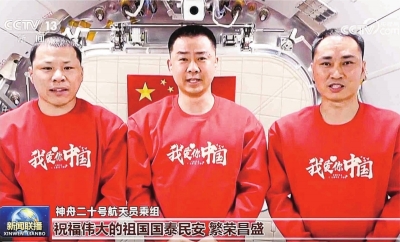 据新华社北京10月1日电(李国利 邓孟)今天是新中国成立76周年,正在太空出差的神舟二十号航天员乘组通过视频祝福伟大祖国繁荣昌盛,祝福全国各族人民幸福安康。