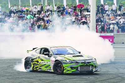 赛场外,近千辆改装车组成的车展同样人气爆棚。低趴宽体、炫酷涂装、轰鸣的排气声浪,引得游客纷纷驻足拍照。某车友俱乐部的刘博和朋友们开着精心改装的爱车前来:“在这里不仅能看比赛,还能以车会友,交流改装心得。”