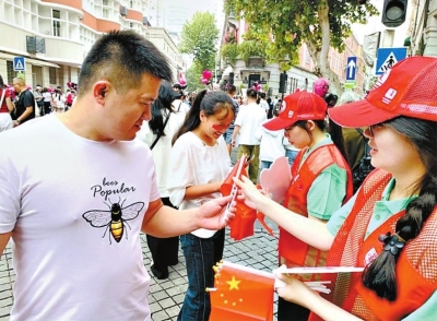 “这条街保留了众多百年老建筑,往前走50米就是标志性的巴公房子,很适合拍照打卡。”在黎黄陂路上,遇到游客驻足咨询游览路线,志愿者立刻拿出地图,细致指明周边景点与公共设施位置,还不忘提醒“节假日人流量较大,请注意保管好随身物品”。“我生在武汉、长在武汉,能把家乡的故事讲给天南海北的人听,看着他们接过国旗时眼里的光,我心里比谁都甜,再累也值!”志愿者曾文静脸上挂着浓浓的笑意。
