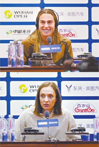 5日,当今女子网坛的“双子星”萨巴伦卡、斯瓦泰克先后出席了武网赛前的发布会。因性格不同,萨巴伦卡和斯瓦泰克对本次武网目标的表达并不一样,但仍可以清晰感受到,两人对于冠军拥有共同的渴望。
