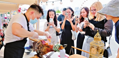 甘露山国际美食市集上,有汇聚全球风味的40余个美食摊。