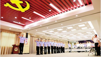 青山公安举行“光荣在党50年”纪念章颁授、新党员入党宣誓仪式。