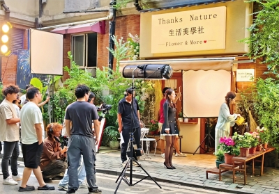 9月29日上午8时,随着现场导演喊出“开机”二字,一部新网剧也选择在“生活美学社”花店取景拍摄。而不远处,来来往往的行人虽也会驻足观看,但早已对此习以为常。