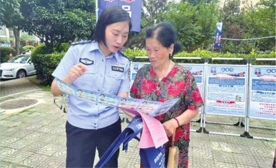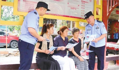 “唐进喜政法先锋队”向辖区老人宣传反诈知识。