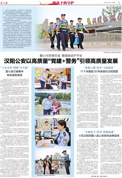 带着热情联系群众、带着真情融入群众、带着激情服务群众,把心系群众、情系百姓体现到履职尽责全过程各方面,汉阳公安坚持走群众路线,听民意、解民忧,解决群众的急难愁盼问题,牢固树立“人民公仆”意识,以满足人民日益增长的美好生活需要为出发点和落脚点,以“平安底色”不断提升着群众的“幸福成色”。