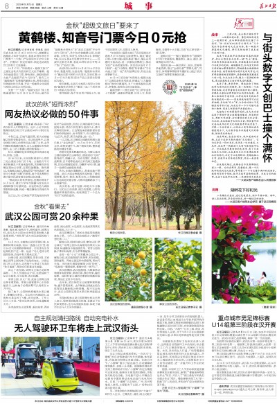 秋天,斑斓的色彩串联起武汉的城市地标、街巷、公园。