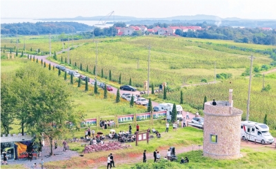 驱车驶入江夏区乌龙泉街道杨湖村,丘陵起伏,绿野绵延,一座石砌塔楼矗立田间,几位年轻人正举着手机寻找最佳拍照角度。不远处的梁子湖波光潋滟,湖畔露营基地的白色帐篷如珍珠点缀。“太出片了!”网红博主“贪玩的超人”在镜头前兴奋地说。今年以来,这个曾以采矿闻名的乡村,因打造独具特色的田园风情景观而走红,成为武汉文旅新景象。