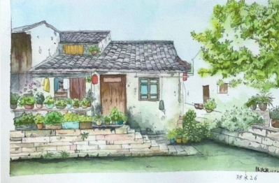 《钢笔淡彩写生》