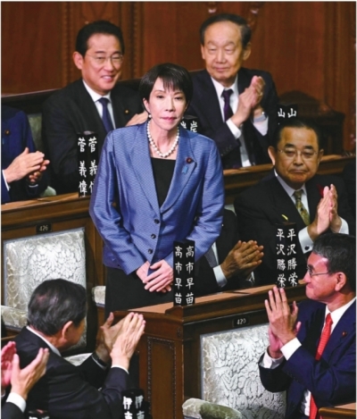 高市有3次参加自民党总裁选举的经历。2021年首次参选未果;2024年与石破茂一起进入决胜轮;在本月初的选举中,她当选自民党总裁。