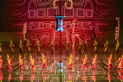 国宝级文物“天兽御尊”被搬上舞台,演员演绎商周祭祀礼制。