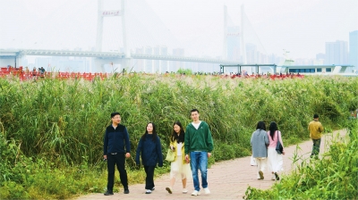 武昌江滩五期天使广场沿线面积约6000平方米的粉黛乱子草正处于最佳观赏期。10月24日下午5时,不少穿着浅色系衣裙的年轻人举着相机穿梭其间,定格花浪涌动的瞬间。正在拍照的大学生李萌萌兴奋地说:“我和室友已经在这里拍了近两个小时。这片粉色花海太浪漫了,拍出的照片挺好看。”许多人在这里打卡后,又到附近拍摄“孤独的树”、小白塔、江景和落日。