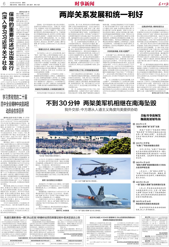 不到30分钟 两架美军机相继在南海坠毁
