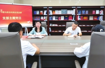 节能与综合利用处党支部利用支部主题党日集体研究产业绿色发展路径。
