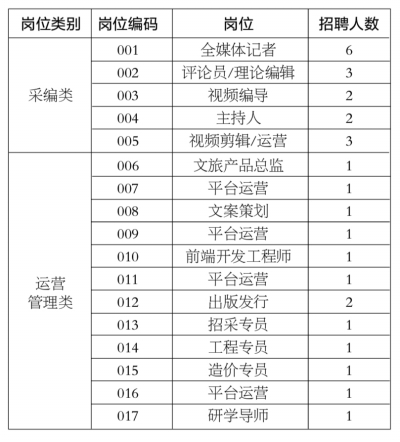 拟招聘岗位分为采编类与运营管理类,共计39人,其中采编类16人,运营管理类23人。