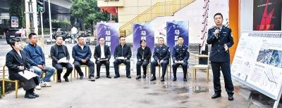 “马路现场会”上,洪山区交通管理大队七中队民警郭铮在介绍路况。