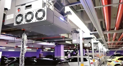 “停车场这24个车位没有单独改造,仍保持油电混停模式。”越秀财富中心工程经理陈荣松介绍,一条滑轨上部署了一台智能搬运机器人和四台充电主机,足以满足24个车位的充电需求。相比安装24个固定充电桩,该方案降低了70%的安装运行成本,并减轻了电力系统容量负担。