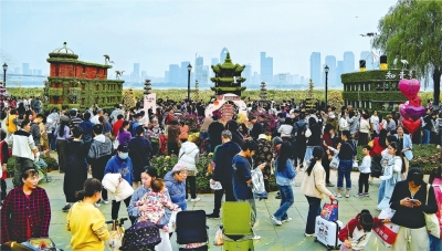 1日下午,我来到汉口江滩,只见赏菊的市民和游客摩肩接踵。今年的扎景造型更加丰富多样,处处彰显着武汉的独特韵味。用绿植打造、菊花点缀的迷你版黄鹤楼、巴公房子、知音号等武汉地标同框亮相。它们仿佛披上一层绿色绒毛,在阳光的照耀下熠熠生辉,吸引大量市民和游客驻足拍照留念。大家拍照时十分默契,快速按下快门后便迅速让出位置,给下一个人留出拍摄空间。
