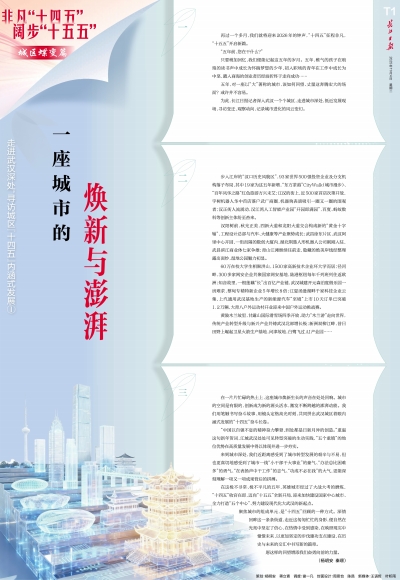 在一片片忙碌的热土上,这座城市焕新生长的声音在处处回响。城市的空间是有限的,创新成为新的源头活水,激发不断跨越的澎湃动能。我们用笔触书写奋斗故事,用镜头定格高光时刻,共同拼出武汉城区着眼内涵式发展的“十四五”奋斗长卷。
