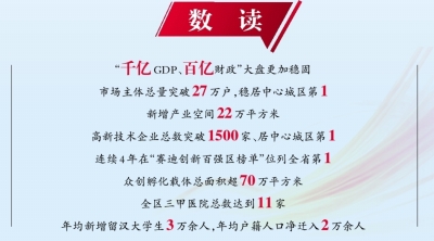 这五年,洪山区坚持把稳增长放在更加突出的位置,大力招商引资和培育市场主体,发展韧性实现“量”的增长,“千亿GDP、百亿财政”大盘更加稳固。