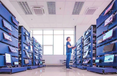 自动化测试实验室内工程师正在对测试结果进行分析。
