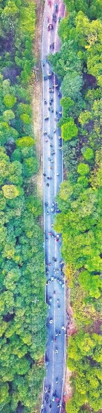 选手们奔跑在层林尽染的环山绿道上。