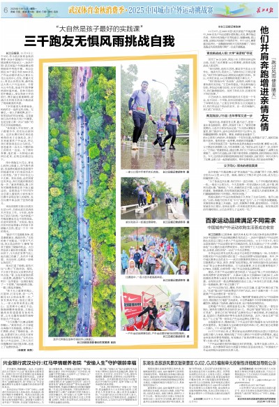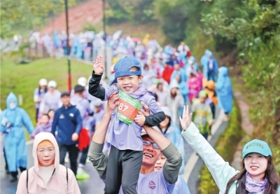 长江日报讯 11月9日上午9时,作为武汉体育金秋消费季·2025中国城市户外运动挑战赛系列活动之一,2025中国·武汉家庭户外挑战赛在绵绵细雨中鸣枪开赛。来自全国近30个省区市的3000余名户外运动爱好者从江夏区大花山运动中心出发,穿越大花山、青龙山自然区域,最终抵达大青八户外运动村。尽管天公不作美,但选手们的参赛热情丝毫未减。层林尽染的雨中赛道上,家长和孩子并肩前行,携手越过重重障碍,浸透汗水和雨水的亲子挑战成了现场最美的风景。