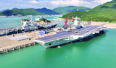 十一月五日,我国第一艘电磁弹射型航空母舰福建舰入列授旗仪式在海南三亚某军港举行。
