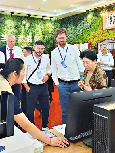 中欧创新论坛在汉举办期间,经贸、公共卫生等领域的欧洲专家在武汉兰丁智能医学股份有限公司调研。