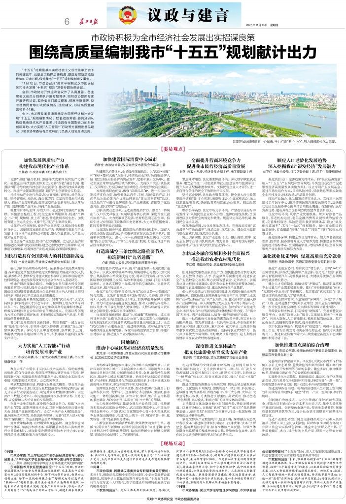 围绕高质量编制我市“十五五”规划献计出力