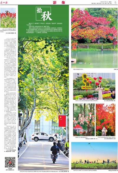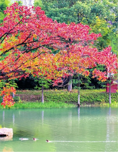 堤角公园和煦亭附近、戴家湖公园水泥管花园旁,以及首义广场、西北湖绿化广场、关山荷兰风情园、楚望台遗址公园等地,均有成片银杏林,落叶铺地,宛若金毯。江汉区常青公园的红枫、乌桕和榉树,一抹抹红色在绿树丛中分外亮眼。该园管理中心主任彭敏表示,今夏园方对红枫进行了人工摘叶处理,以减少养分消耗,促使秋叶更红、观赏期更长。
