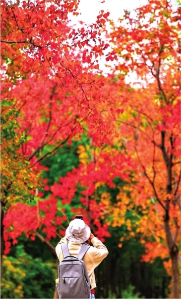 秋高气爽,市民纷纷到户外“捕捉”秋色。