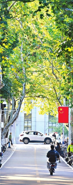 秋天的华中科技大学层林尽染,梧桐树大道上树叶开始用色彩演绎生命中最华丽的乐章。