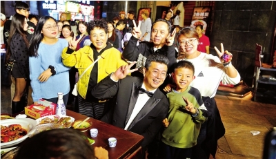 “Yue 东湖”森林烤场,游客们开窑分食烤全羊。