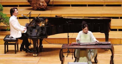 古琴名家赵家珍(右)和音乐人曹轩宾合作《在此》。