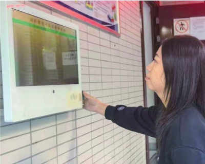 就在李师傅观看“岗前微课堂”的时间里,公司稽查管理部的张建兵和一名同事迅速对李师傅的车进行检查。“李师傅,请清理一下主驾门上的塑料袋。”张建兵一眼就见到车辆主驾门上过早吃完剩下的垃圾袋。“DAMS设备(后台监控)正常,无遮挡。双评议二维码完整!证照都在车上,标志标识都规范张贴。”张建兵探身在车内一番检查后,对正在后备厢检查清洁与否、灭火器配备是否完整的同事说。“收到,我这边后备厢也没问题。”说完,同事在携带的检查表格上一一画钩。