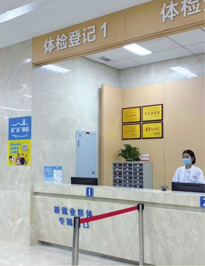 例如有骑手专用停车位,还从体检、就诊、外伤包扎、康复、疫苗接种、心理咨询各个环节提供精准服务。为了提高就诊效率节省时间,新就业群体友好医院设有绿色就医通道,实现优先诊疗、快速转诊。提供五折体检套餐、免费康复体验(推拿、艾灸)等减免。医院还可以根据实际需求,将移动体检车开到各站点,就地进行体检。