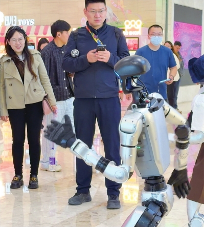 会跳舞的人形机器人要转场汉交会为嘉宾端茶倒水。