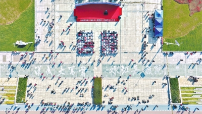 活动现场,巨型地书作品的创作成为焦点。参赛者手持特制的地书笔,在百米亲水平台上挥毫泼墨,以环保石灰水为“墨”,以平整地面为“纸”,共同完成了一幅书法长卷。