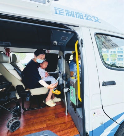 市民乘坐定制微公交,从小区前往地铁站。