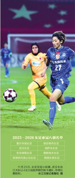 长江日报讯(记者马万勇)在23日晚结束的2025—2026亚足联女子冠军联赛(以下简称女足亚冠)正赛小组赛第三轮较量中,武汉车谷江大女足以4∶0完胜伊朗巴姆卡通女足,以小组第一晋级亚冠八强。
