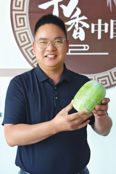 香芋水果冬瓜是引进品种,价格不便宜。但刘清觉得,搞农业就要创新。谈起自家的冬瓜,他就滔滔不绝,这种冬瓜自带香芋风味,去皮后可以直接生吃,清甜多汁,煲汤后更是软糯香甜,亩产可达6000至10000斤。因其优异的口感以及独家品种,盒马鲜生、小象超市等商超、平台早在种植初期就主动联系,签下包销协议。